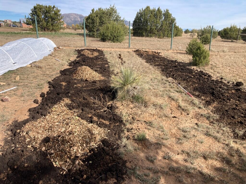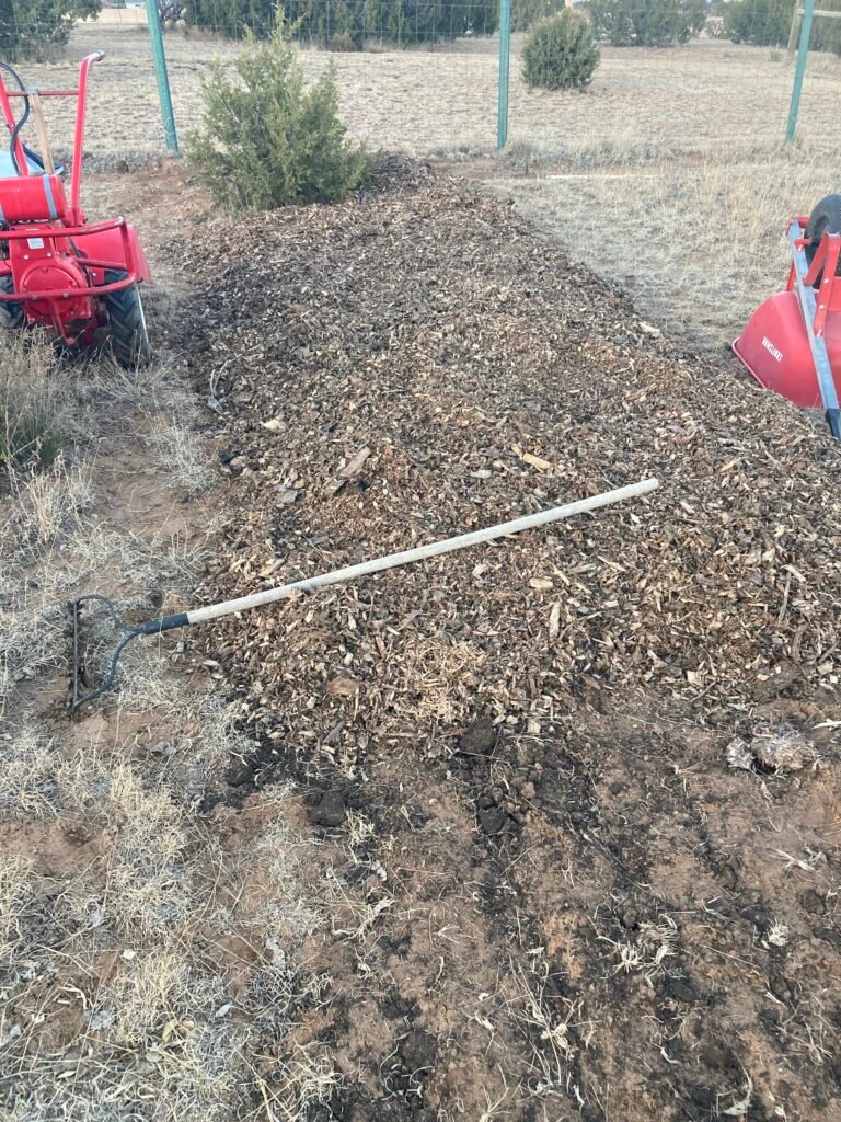 Covered with 10-12 inches of wood tree mulch which we got free from a local arborist.
